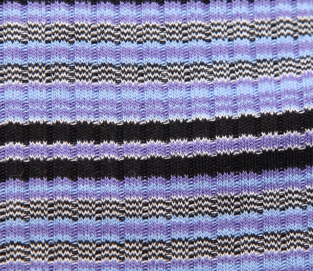 Ribbed knits have obvious lengthwise ribs of knit stitches (the v-formed stitches). It's reversible.