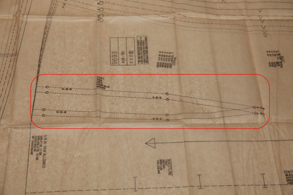 You might also find additional seam or sew lines on the pattern, like in the case of darts or pleats. But these aren’t as common in beginner level patterns since darts and pleats are used for shaping garments. However, there are other times you can find a seam line on pieces that aren’t just for darts.