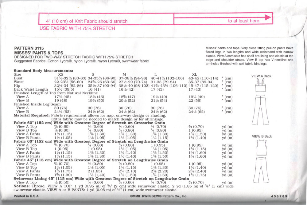 Another thing to note is if the model on the front is wearing pants and a top, and you want to make the pants and top, check the line drawing and description to make sure it includes both the top and pants. If the top is shown and described but the pants are not, then they are not in the pattern. Sometimes, you’ll find the same photo on the front of two different patterns. One for the tops, one for the bottoms. So know before you buy!