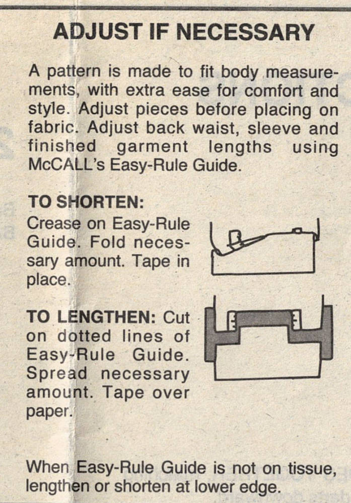 Most patterns include basic adjustment lines for length, and don't be afraid to use them! Even simple adjustments like lengthening or shortening can make a huge difference in how your finished garment fits.