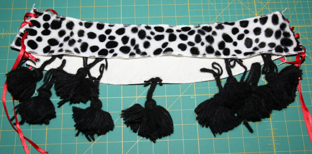 First, it's overkill. I didn't need to try to make the equivalent of a belt for just a couple bunches of fringe.