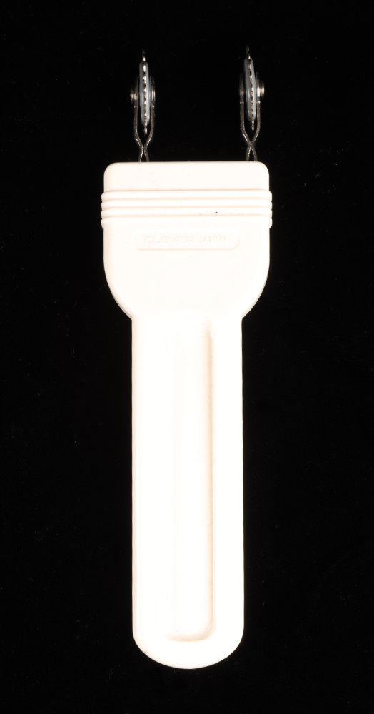 The plastic holds a cartridge of powdered chalk and as you run the wheel over the fabric, it deposits a fine line of chalk onto the fabric. You have to make sure you press hard enough on the fabric with the wheel to make it spin, this is how it deposits the chalk.